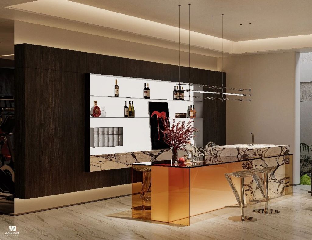 空间低语着“老钱风”的从容,并非炫耀,而是一种无需言明的质地。舒适深陷于面料的肌理,惬意流淌在光影的节奏里。金属的笔触勾勒出精炼,木质的温度包容着时光,而玻璃将这一切轻盈地托起,让奢华成为呼吸本身。 这里是一处心域:现代的精神,东方的魂,最终都归于一种安然的格调。不追赶时间,只涵养生活。